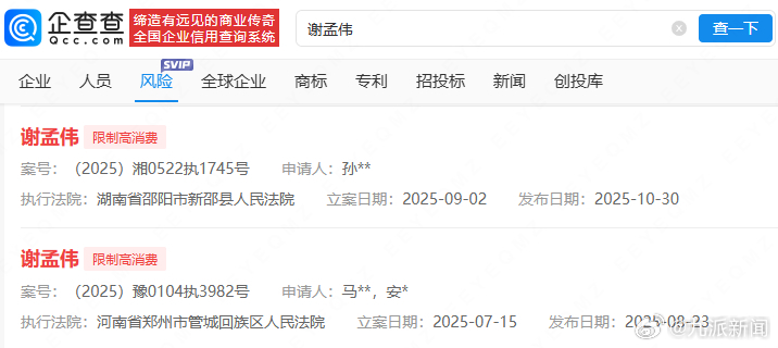 “嘎子哥”谢孟伟再次被限制高消费